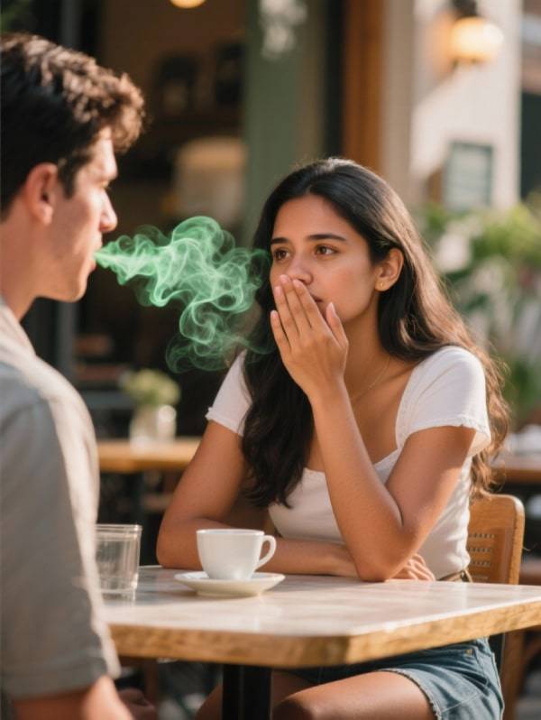 Las bacterias entre los dientes causan mal olor que el cepillo no elimina.