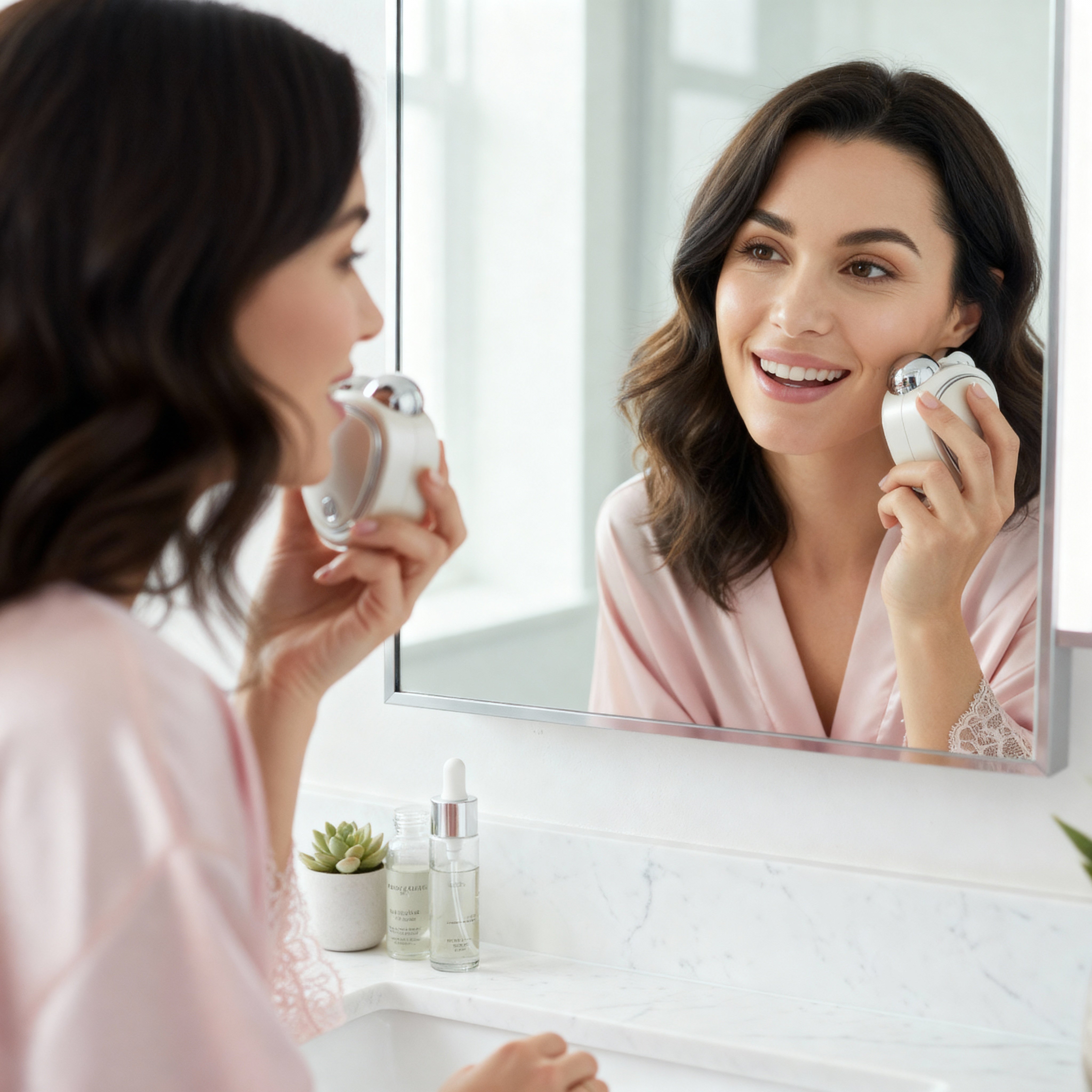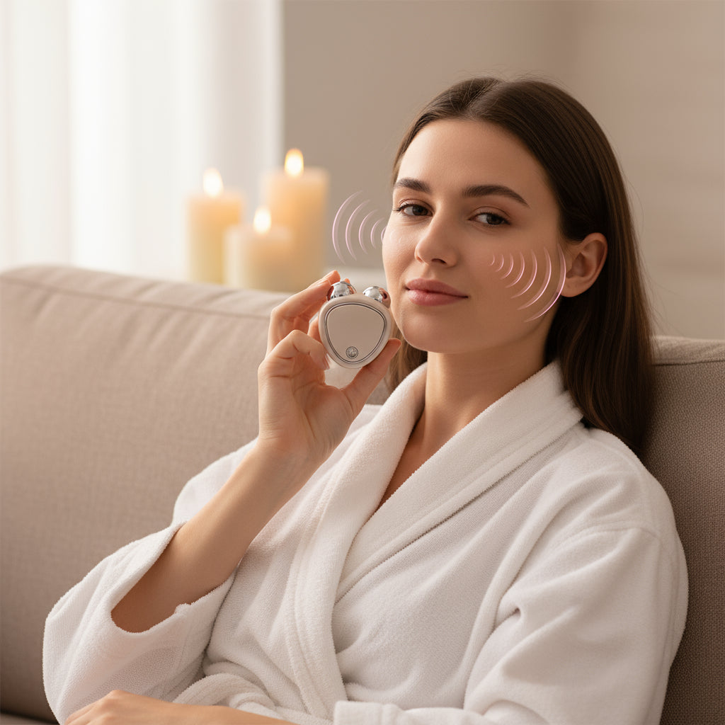Tecnología de microvibración que estimula la piel desde adentro: firmeza, brillo y descanso facial en minutos